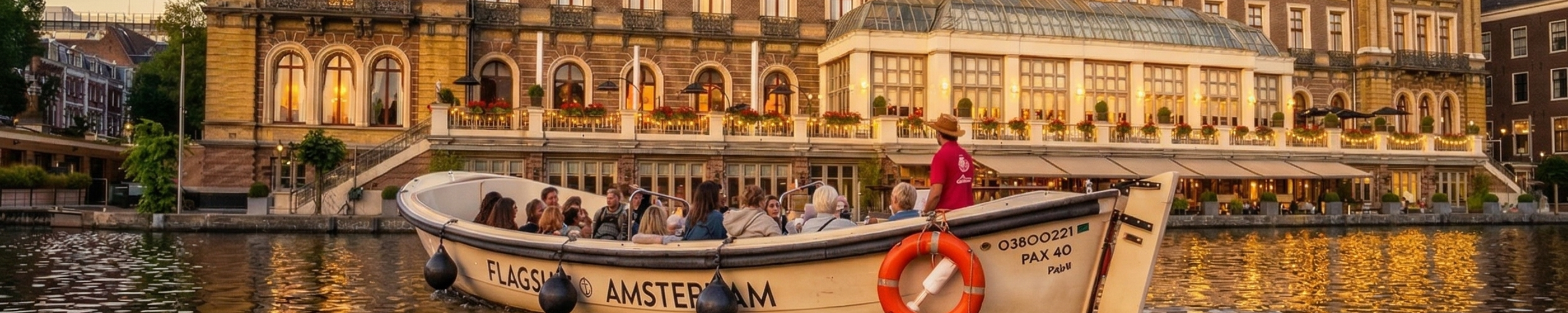 duration: 90 minutes cancellation_summary: Cancel up to 24 hours in advance for a full refund. meeting_point: Museumbrug 2, Amsterdam group_size: Maximum 24 guests accessibility: Guests must be able to take a small step down into the boat. Unfortunately, the boat is not wheelchair accessible. Folded strollers are permitted. pricing: * All-Inclusive Evening Cruise (Unlimited Drinks & Snacks): From € 25 per person (all ages) description: Experience the magic of Amsterdam at night on an all-inclusive, 90-minute evening canal cruise. Step aboard our 100% electric, open-air boat (maximum 24 guests) and glide peacefully through the UNESCO-listed canal belt as the city's iconic bridges and merchant houses light up. With unlimited beer, wine, and soft drinks, plus a selection of typical Dutch snacks, you can truly relax and enjoy the romantic atmosphere. Snuggle up under our cozy blankets while your local English-speaking captain shares fascinating historical stories, hidden gems, and typical Amsterdam humor. Because our boats are fully open, you won't have to deal with the glare of dirty glass windows. This guarantees the absolute best, unobstructed views and photos of the illuminated city. It’s the perfect, relaxed evening activity for couples, friends, and families who want to avoid the crowded mass-tourism boats. highlights: * Enjoy an extended 90-minute evening cruise (30 minutes longer than standard tours) * Admire Amsterdam's beautifully illuminated bridges and merchant houses from the water * Relax with unlimited beer, wine, soft drinks, and typical Dutch snacks * Escape the crowds on an intimate, fully electric open boat (max 24 guests) * Stay warm under our cozy blankets while listening to live stories from your captain check_in_details: Meet at Captain Jack Amsterdam on Museumbrug 2, next to the Rijksmuseum. Stand with your back to the museum, facing the water. Walk towards the bridge directly ahead of you; our dock is on the left side. To ensure a smooth check-in, please look specifically for our dock stewards wearing bright PINK clothing. Please arrive 10 minutes before your departure time. special_requirements: Children must be accompanied by an adult. The minimum drinking age for alcoholic beverages is 18 years (ID may be required). restrictions: To maintain a relaxed and cozy atmosphere for all guests, this is a cultural history tour, not a booze cruise. Heavy drinking groups or bachelor/bachelorette parties are not permitted. Smoking is strictly prohibited on board. Please note there is no toilet on the boat; we advise planning a bathroom break before the tour begins. extras: * Onboard Bar: A selection of chilled Heineken beer, wine, and soft drinks is available for purchase during the cruise (if you haven't booked the All-Inclusive option). * Dutch Bites: Typical local snacks, including cheese, mini sausages, and traditional stroopwafels, can be ordered directly from your captain. * Weather Equipment: We provide cozy blankets to keep you warm on chilly days, and sturdy umbrellas in case of typical Dutch rain, ensuring your comfort at all times. disclaimers: * Weather Conditions: Our boats are fully open-air to provide the best unobstructed views. We sail rain or shine. While we provide umbrellas and blankets, please dress appropriately for the unpredictable Dutch weather. * Route Alterations: The exact 90-minute cruising route may vary on the day due to canal traffic, local city events, or temporary bridge closures beyond our control. * Right of Refusal: For the safety and enjoyment of all guests, the captain reserves the right to refuse boarding to heavily intoxicated individuals, or unauthorized bachelor/bachelorette party groups, without a refund. * No Mid-Cruise Stops: As our authentic boats do not feature onboard toilets, please note that we cannot make bathroom stops along the route once the tour has departed.