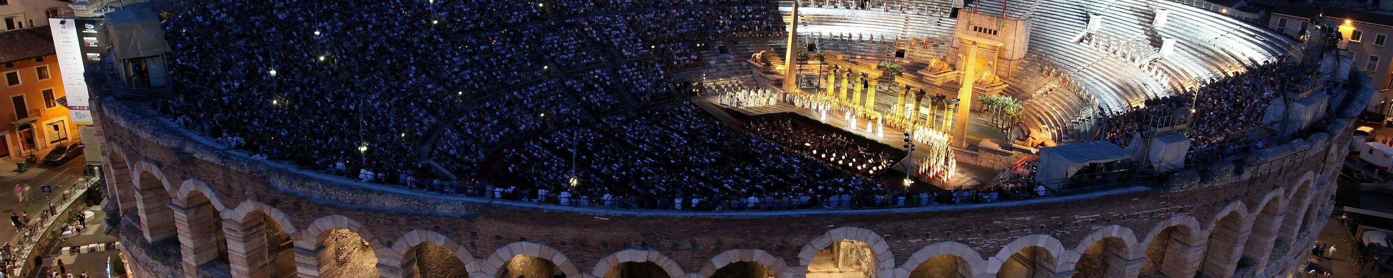 Book your tickets for opera masterpieces like La Traviata, Aida, Carmen, Tosca at the Verona Arena. This Opera Package includes an opera ticket, a 1-hour Verona guided tour (English and German), and free public transport in Verona area for the days after the event.Shows in 2026:JUNE/JULY (The Opera starts at 9:15 PM)FRI 12.06 LA TRAVIATA - PREMIÈRESAT. 13.06 LA TRAVIATA - PREMIÈREFRI 19.06 AIDA DI CRISTALLOSAT. 20.06 LA TRAVIATATHU. 25.06 AIDA DI CRISTALLOFRI 26.06 NABUCCOSAT. 27.06 LA TRAVIATATHU. 2.07 AIDA DI CRISTALLOFRI 3.07 LA BOHEMESAT. 4.07 NABUCCOSUN. 5.07 LA TRAVIATATHU. 9.07 LA TRAVIATAFRI 10.07 AIDA DI CRISTALLOSAT. 11.07 LA BOHEMESUN. 12.07 NABUCCOTHU. 16.07 LA TRAVIATAFRI 17.07 LA BOHEMESAT. 18.07 NABUCCOSUN. 19.07 AIDA DI CRISTALLOTHU. 23.07 NABUCCOFRI 24.07 AIDA DI CRISTALLOSAT. 25.07 LA BOHEMETHU. 30.07 AIDA ZEFFIRELLIFRI 31.07 LA TRAVIATAAUGUST/SEPTEMBER (The Opera starts at 9:00 PM)SAT. 1.08 NABUCCOTHU. 6.08 LA TRAVIATAFRI 7.08 TURANDOTSAT. 8.08 NABUCCOSUN. 9.08 AIDA ZEFFIRELLIFRI 14.08 TURANDOTSAT. 15.08 AIDA ZEFFIRELLITHU. 20.08 NABUCCOFRI 21.08 TURANDOTSAT. 22.08 LA TRAVIATASUN. 23.08 AIDA ZEFFIRELLITHU. 27.08 TURANDOTFRI 28.08 NABUCCOSAT. 29.08 LA TRAVIATASUN. 30.08 AIDA ZEFFIRELLITHU. 3.09 TURANDOTFRI 4.09 AIDA ZEFFIRELLISAT. 5.09 LA TRAVIATAWED. 9.09 NABUCCOTHU. 10.09 AIDA ZEFFIRELLIFRI 11.09 TURANDOTSAT. 12.09 LA TRAVIATA